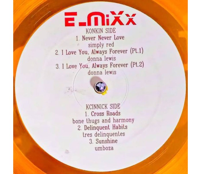 E-MIXX VOLUME 1 - A 5 tracks vinyl records, pressed in Transparent Orange.